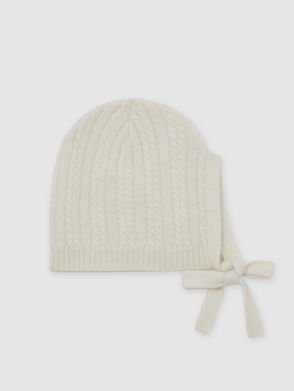 100% Cashmere Cable-Knit Bonnet Baby Accessories In Ivory