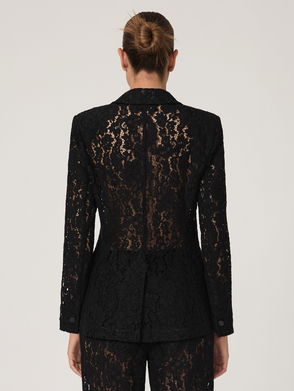 Double-Breasted Lace Tuxedo Blazer In Black