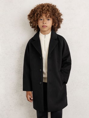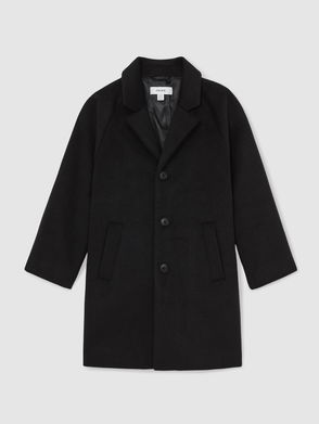 13-14 Yrs Wool-Blend Raglan-Sleeve Overcoat In Black