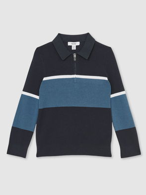 9-13 Yrs Cotton-Blend Colour-Block Polo Shirt In Navy Blue/Airforce Blue