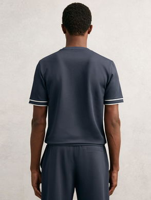 Textured Crew-Neck Tipped T-Shirt In Airforce Blue