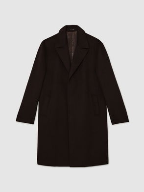 Wool-Blend Double-Breasted Overcoat In Chocolate Brown