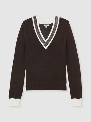 Bead-Detail V-Neck Knitted Jumper In Chocolate Brown