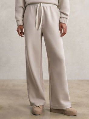 Petite Premium Interlock Wide-Leg Joggers In Stone