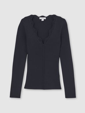 Crochet-Trim Rib-Knit Top In Taupe Neutral
