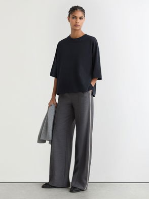 Cotton Ribbed-Neck Oversized T-Shirt In Navy