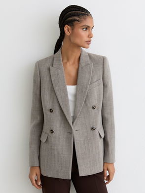 Herringbone Double-Breasted Blazer Wool-Cotton In Grey