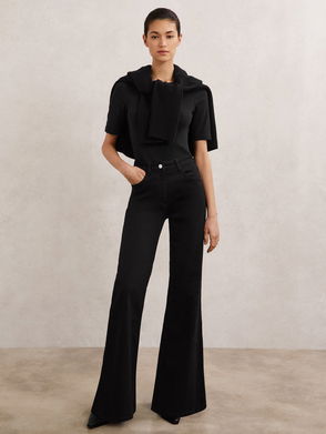 Scarf-Print Wide-Leg Jumpsuit In Black/Ivory