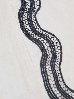 Linen Scallop-Trim Shorts In Ivory/Navy