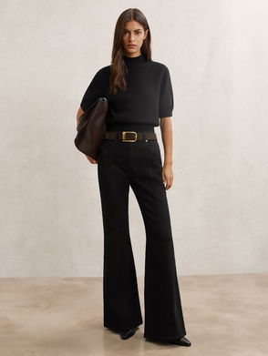 Cotton And Wool Funnel-Neck Knit Top In Black