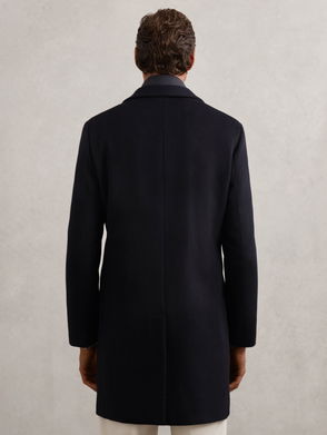 Wool-Blend Internal-Gilet Overcoat In Navy