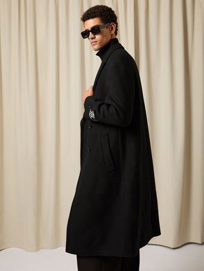 Monogram Long Double-Breasted Coat Wool-Blend In Black