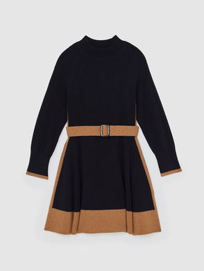 Wool-Blend Belted Knitted Dress With Cashmere In Navy