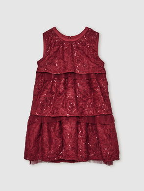 3-9 Yrs Sequin-Embellished Tiered Dress In Red