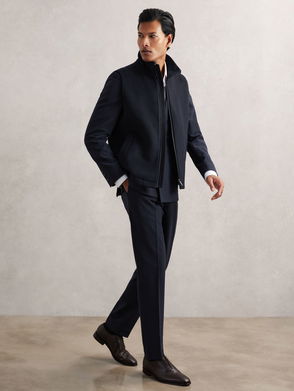 Wool-Blend Funnel-Neck Zip Jacket In Navy