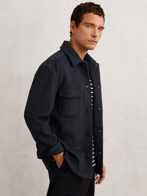 Wool-Blend Twin-Pocket Overshirt In Navy