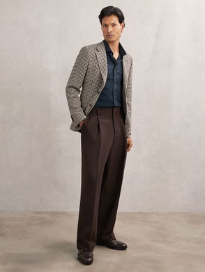 Wool-Blend Check Single-Breasted Blazer Tailored-Fit In Navy