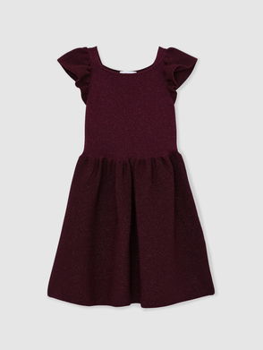 Stripe-Detail Collared Knit Dress In Dark Pink