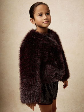 3-9 Yrs High-Neck Drape Back Dress In Burgundy