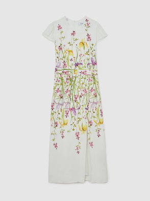 Floral-Print Belted Midi Dress In Cream/Yellow