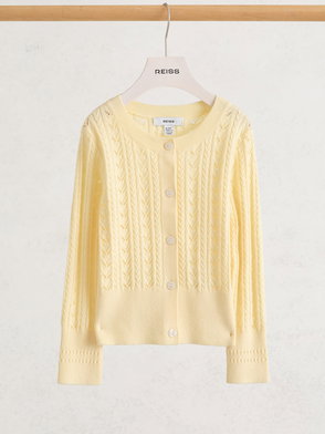 13-14 Yrs Wool-Cotton Pointelle Cardigan In Lemon