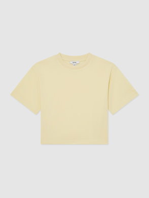 13-14 Yrs Cotton Ribbed-Neck Oversized T-Shirt In Yellow