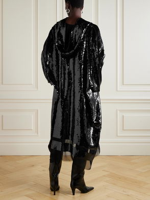 Hooded Tulle-trimmed Sequined Silk-crepe Kaftan