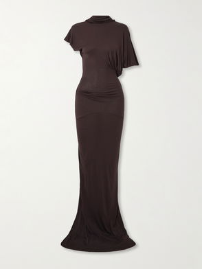 Sahara Asymmetric Paneled Gathered Jersey Gown