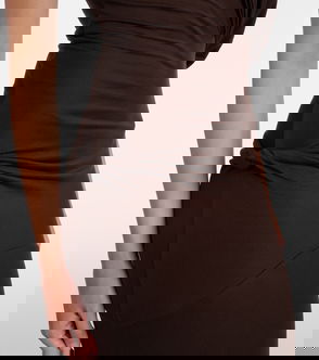 Asymmetric Gathered Wrap-Effect Midi Dress