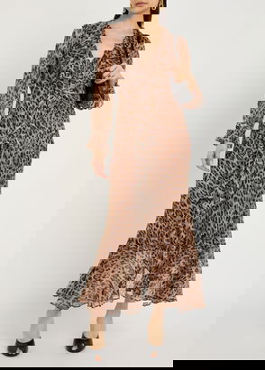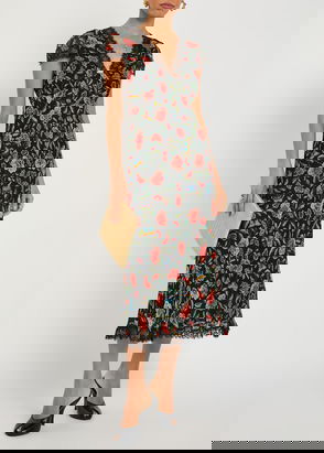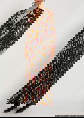 Adalind Tie-neck Asymmetric Tiered Floral-print Chiffon Dress