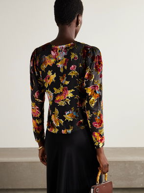 Evelyn Embellished Floral-print Devoré-velvet Wrap Top