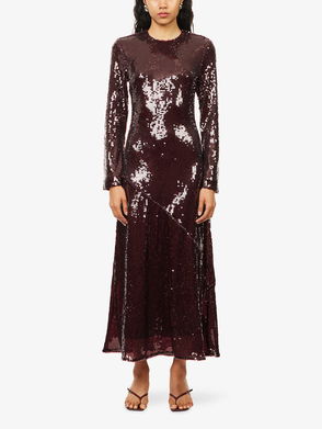 Kaisa Long-Sleeve Sequin-Embellished Maxi Dress