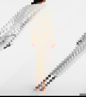 Bridal Feather-Trimmed Crêpe Midi Dress