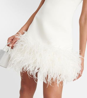 Bridal Feather-Trimmed Crêpe Midi Dress
