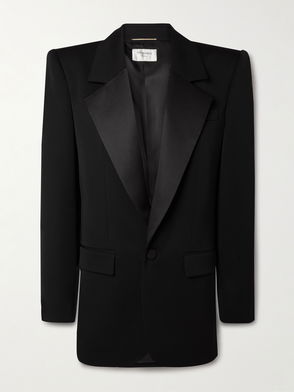 Cropped Satin-Trimmed Grain De Poudre Wool Jacket