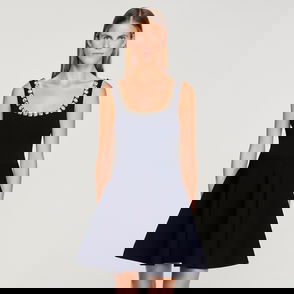 Ruffled Crochet-Knit Halterneck Mini Dress