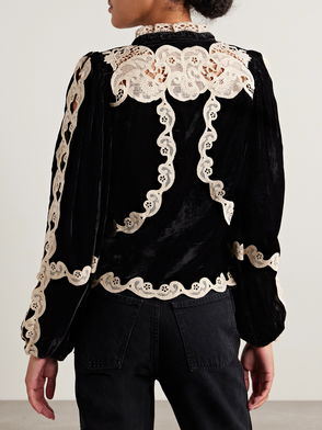 Dana Tulle-Trimmed Embroidered Velvet Blouse