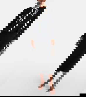 Sequined Floral Tweed Midi Dress