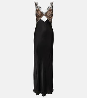 Satin-trimmed Lace Maxi Dress