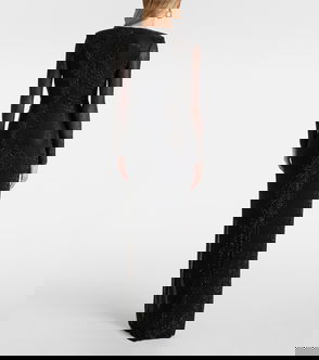Crystal-Embellished Lace-Trim Chenille-Knit Midi Dress