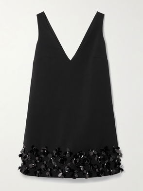 Feather-Trimmed Crystal-Embellished Crepe Mini Dress