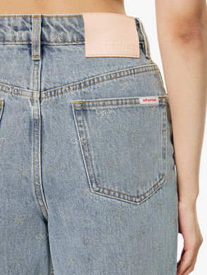 Crystal Short-Sleeves Stretch-Denim Blend Mini Dress