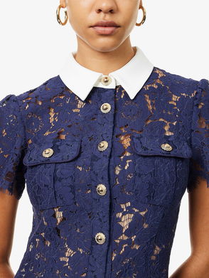 Pointelle Crochet-Embellishment Knitted Mini Dress