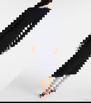 Crystal-Embellished Ribbed Stretch-Knit Midi Dress