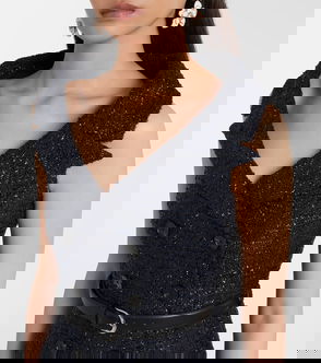 Crystal-Embellished Metallic Bouclé-Tweed Mini Dress