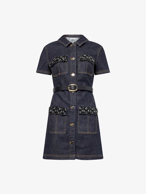 Crystal Short-Sleeves Stretch-Denim Blend Mini Dress