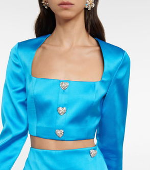 One-Shoulder Asymmetric Crystal-Embellished Mesh Top