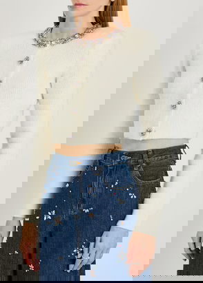 Crystal-embellished Ribbed-knit Cardigan