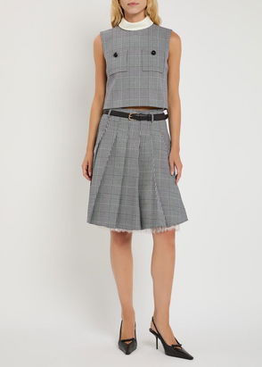 Check-Print Square-Neck Wool-Blend Mini Dress