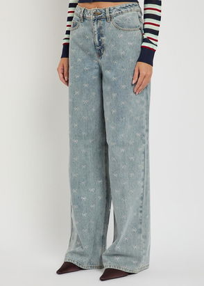 Crystal-Embellished High-Rise Wide-Leg Jeans